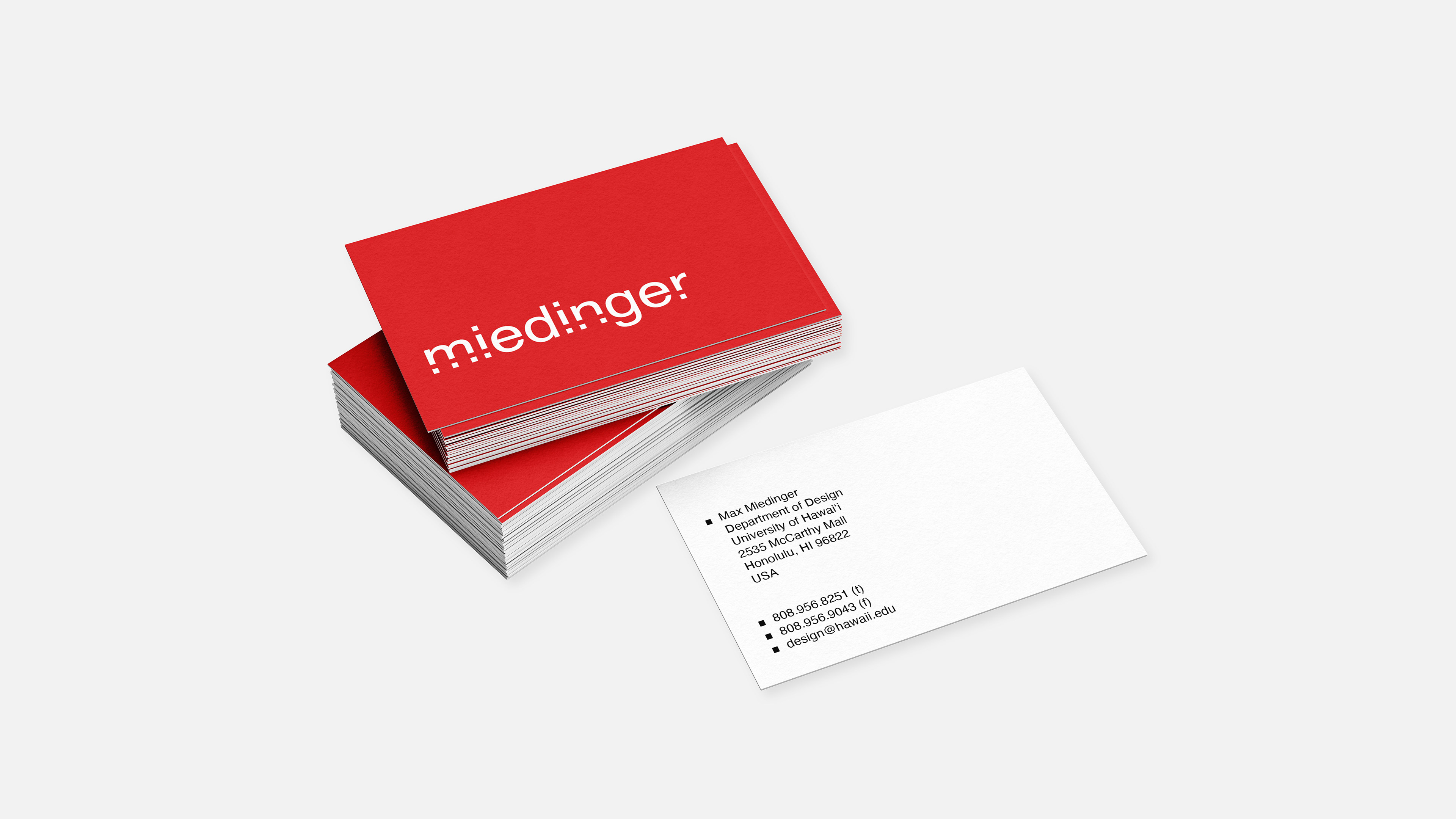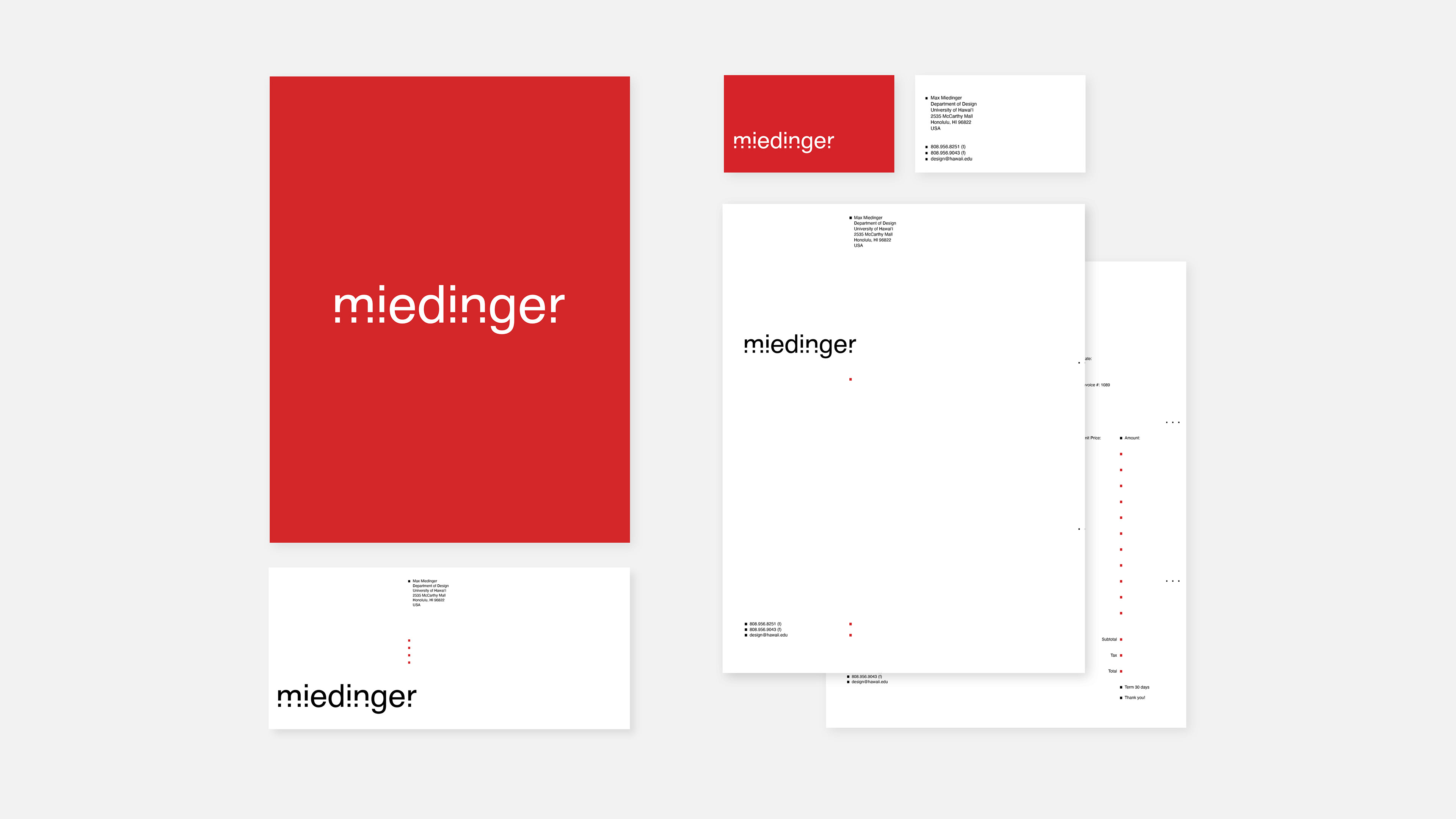 This logo identity was designed for the typographer Max Miedinger, the creator of the typeface Helvetica. The identity emphasizes the tittle as it reflects the neutral, clean, and blocky characteristics of Helvetica.